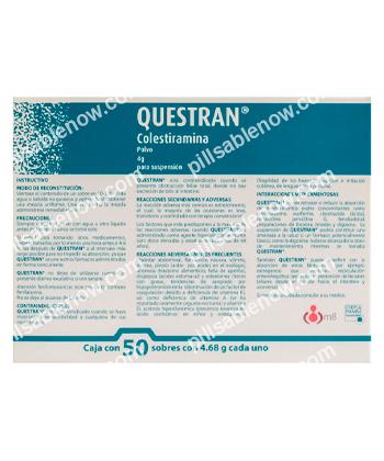 Before using Questran, inform your doctor if you have bowel obstruction, digestive disorders, or pancreatitis. Adequate fluid intake is important to prevent constipation. Inform your healthcare provider of any other medications, as timing may affect absorption.